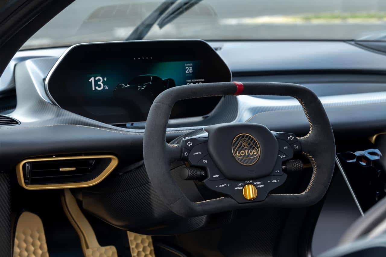 Wie einst das Fahrzeug des Champions ist auch der Evija schwarz lackiert und mit Goldakzenten verziert. Am und im Fahrzeug finden sich einige weitere Anspielungen auf die glorreiche Phase. Die „8“ an der B-Säule ist eine Referenz an die einstige Startnummer. Innen finden sich ebenfalls Goldakzente wie eine aufs Armaturenbrett gestickte Unterschrift des Rennfahrers oder ein goldfarbener Drehknopf am Lenkrad, der aus recyceltem Aluminium aus dem 1972er-Siegerauto gefertigt wurde.